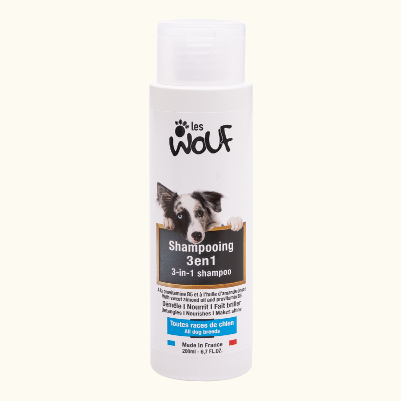 Le shampooing 3 en 1 est idéal pour nettoyer tout en démêlant, nourrissant et en faisant briller le pelage de votre chien. La formule contient de la provitamine B5 et de l’huile d’amande douce, le poil est démêlé en douceur et nourri en profondeur. Il est hydraté, gainé et plus facile à brosser. Le pelage de votre chien est brillant et doux et l’équilibre de sa peau est respecté. Convient à toutes les races de chien.